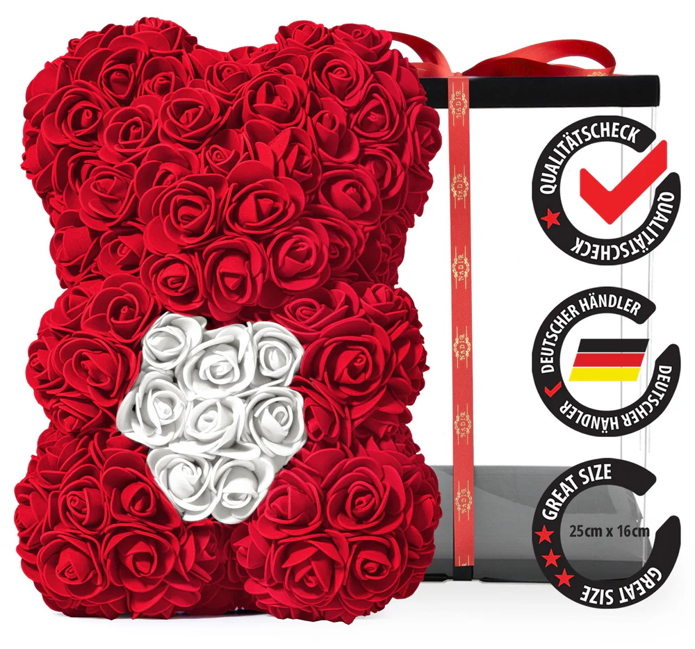 Den Teddybär aus Rosen als elegante Dekoration für dein Wohnzimmer oder doch als süßes romantisches Geschenk im Schlafzimmer nutzen? Unsere hochwertigen Rosenbären sind dafür geeignet sowie unbegrenzt und überall einsetzbar. Sie eignen sich nicht nur als perfekte Geschenkidee, sondern verleihen Ihrer Inneneinrichtung auch einen Hauch von Charme und Einzigartigkeit.
