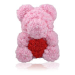 Die Blumenbären (Größen: 25 / 40 cm) umfassen circa 300 / 650 per Handarbeit angebrachten Rosenblüten aus PE-Schaumstoff. Diese Rosen verwelken nicht, halten ewig und bestehen aus einem umweltfreundlichen und hypoallergenen Material. Der Teddybär ist geruchslos und duftet nicht nach Chemie.